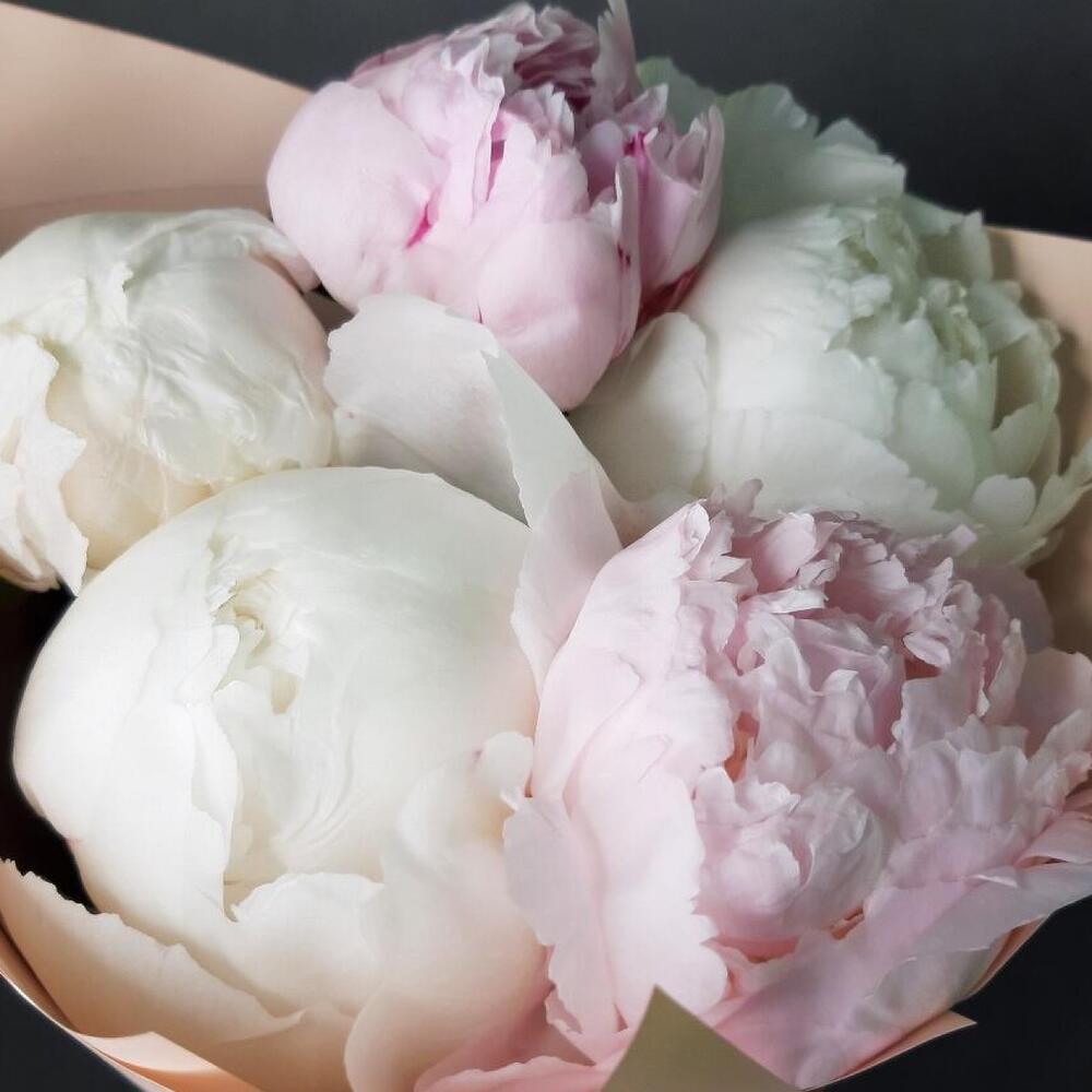 Пион – 5 шт.Лента атласная – 1 шт.Упаковка дизайнерская – 2 шт.