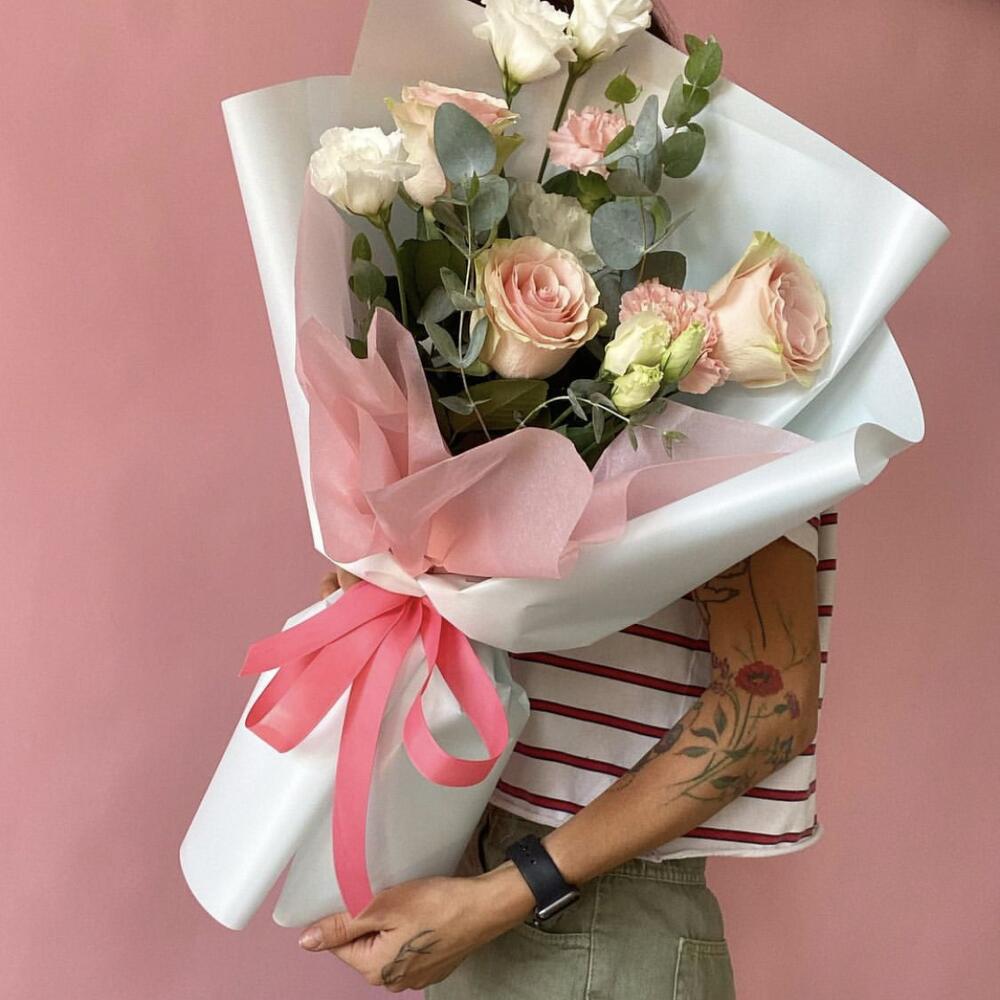 Кустовые розы, Лизиантусы, Розы, Сухоцвет