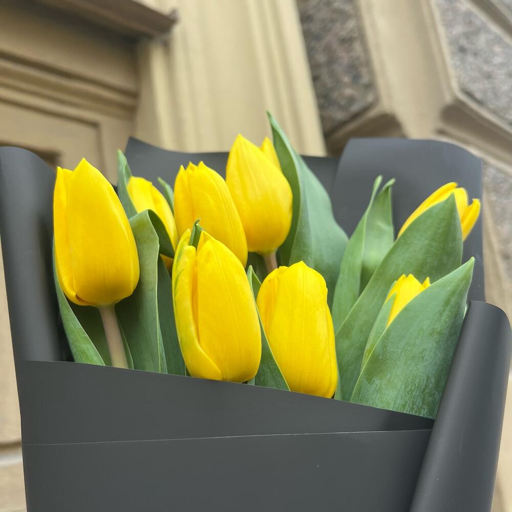 YELLOW BLACK 9 тюльпанов в стильной упаковке